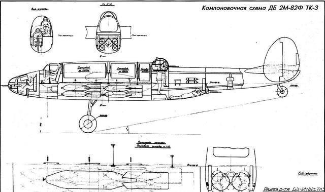 到12月中旬,初步设计工作完成,苏霍伊又补充了一个更传统的双发设计,配备2台M82F的四座轰炸机DB-2M82F-TK3。两个新设计都完成了初步方案。